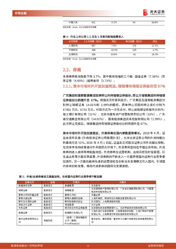 光大证券:非银金融行业周报:2月保费收入延续正增长,外资涌入谋求控股券商.pdf