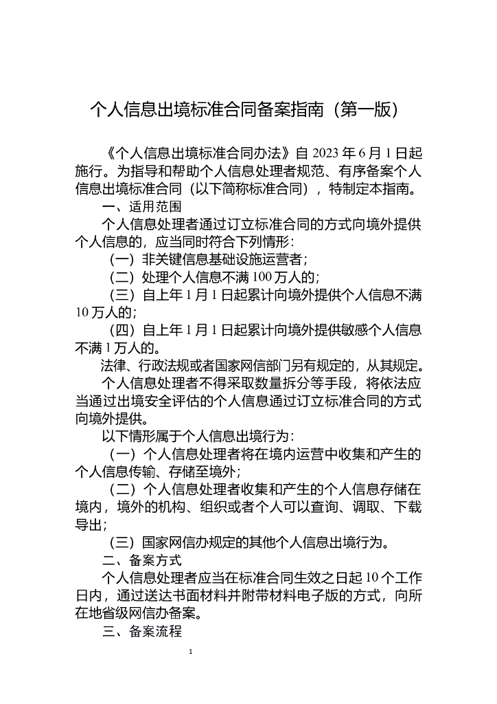 国家互联网信息办公室:个人信息出境标准合同备案指南(第一版).doc