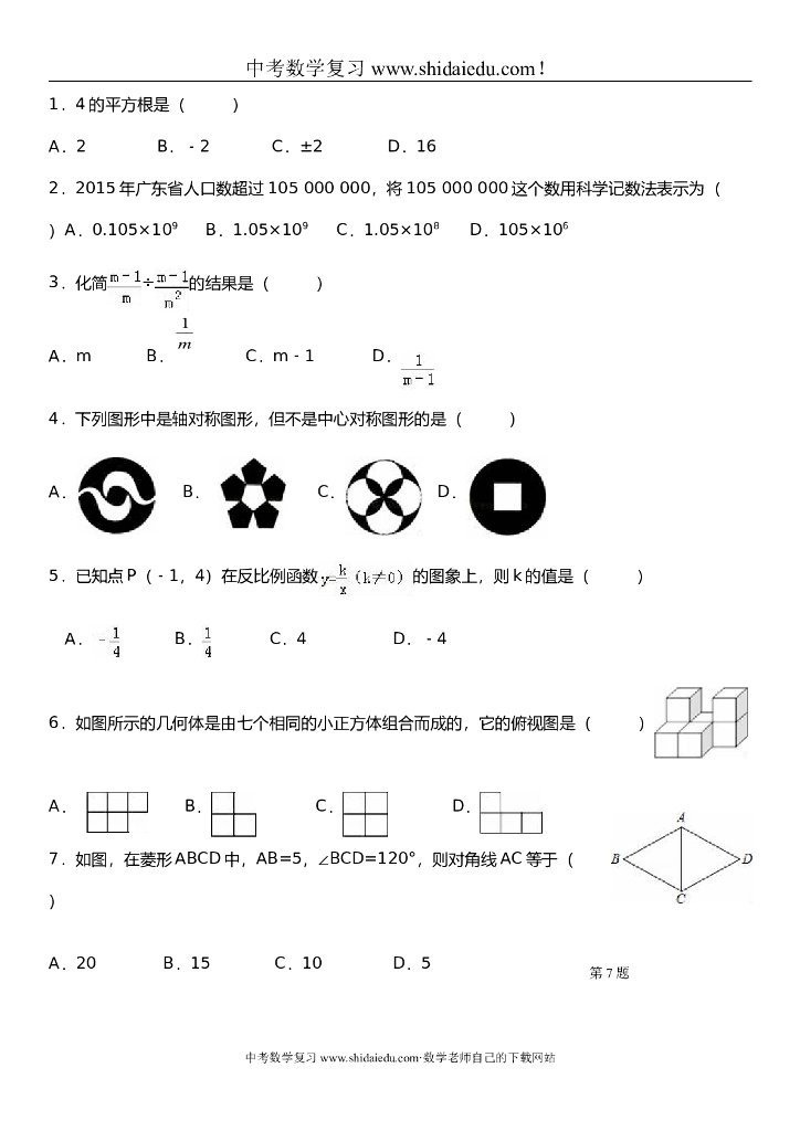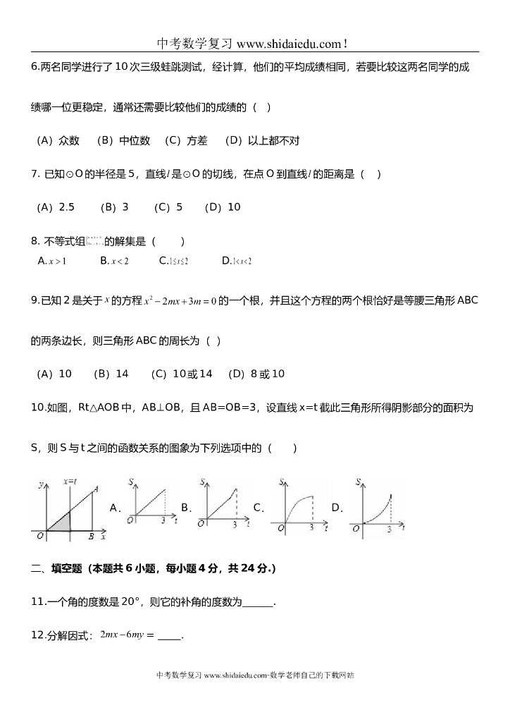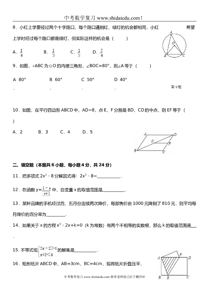 中考数学考前基础强化练习选择及填空.doc