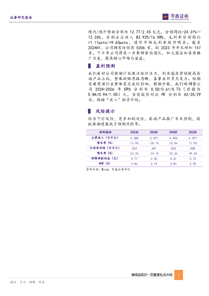华鑫证券:张裕A(000869)-公司事件点评报告:行业需求疲软,业绩不及预期.pdf