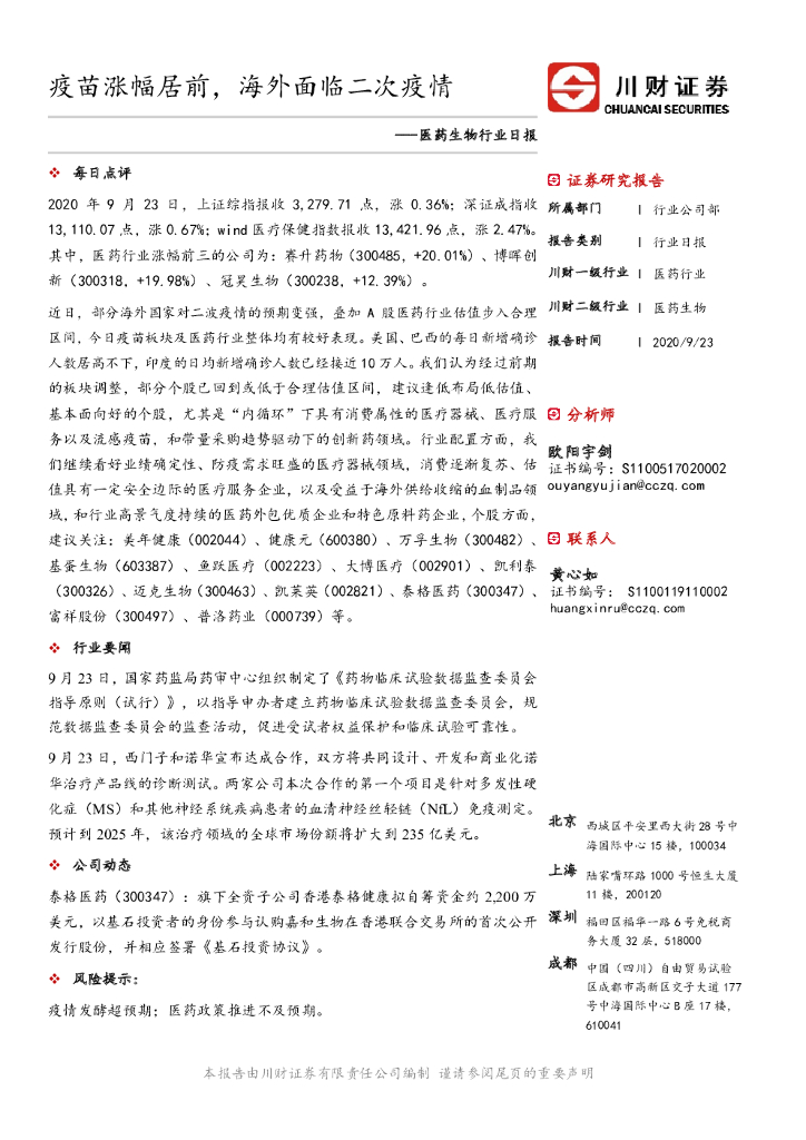川财证券:医药生物行业日报:疫苗涨幅居前,海外面临二次疫情.pdf