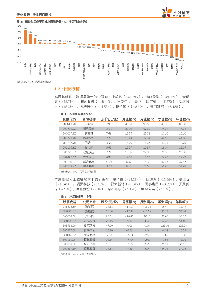 天风证券:基础化工行业研究周报:前两月化学原料和制品制造业投资同比增长6.0%,氯化铵、有机硅价格上涨.pdf