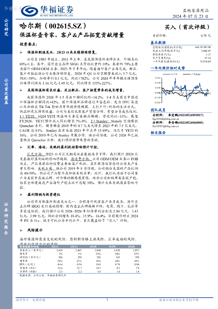 华福证券:哈尔斯(002615)-保温杯壶专家,客户&产品拓宽贡献增量.pdf