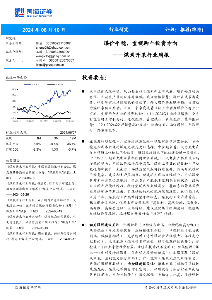 国海证券:煤炭开采行业周报:煤价平稳,重视两个投资方向.pdf