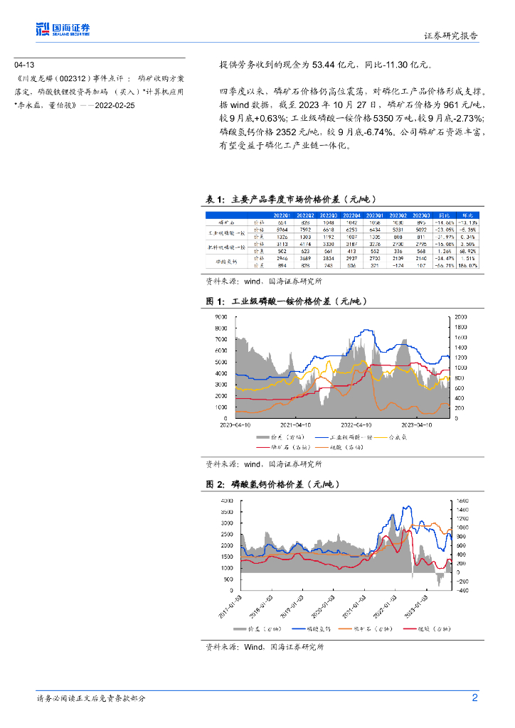 国海证券:川发龙蟒(002312)-2023年三季报点评:Q3业绩环比修复,矿化一体打造第二增长曲线.pdf