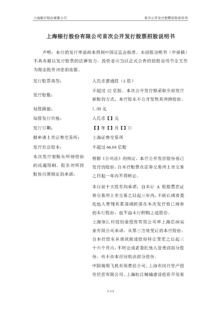 上海银行股份有限公司上交所主板IPO上市招股说明书.pdf