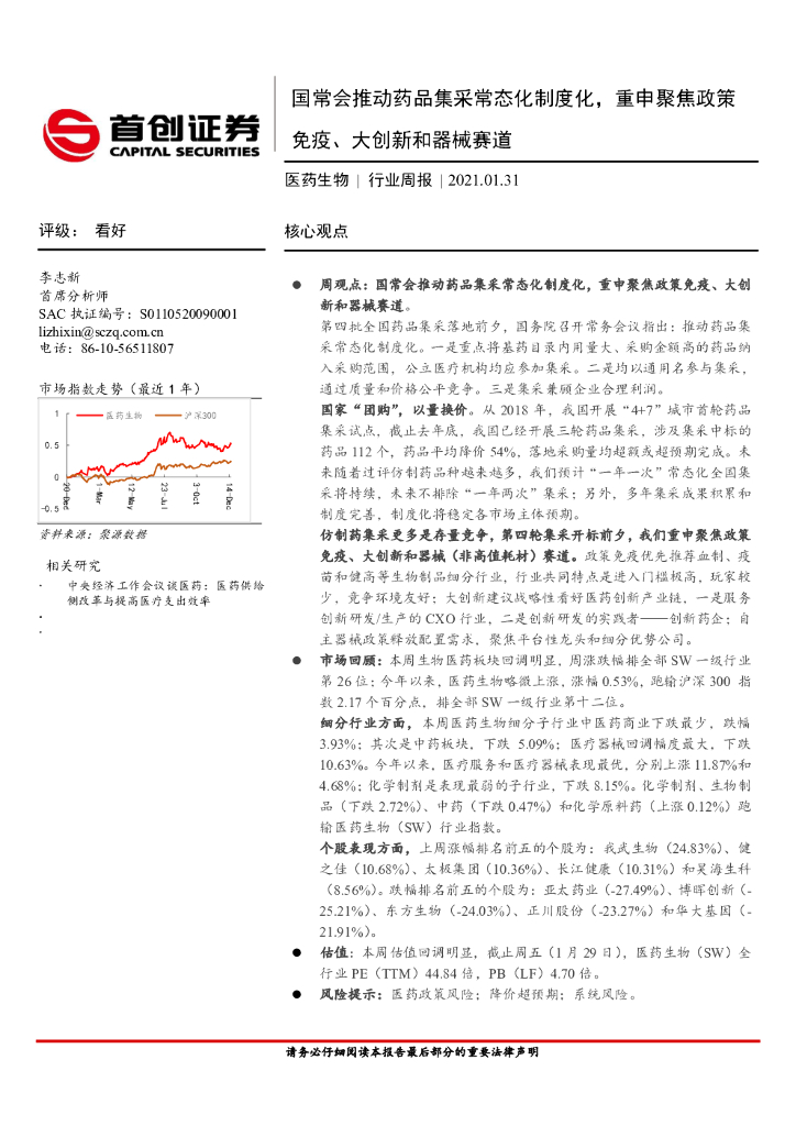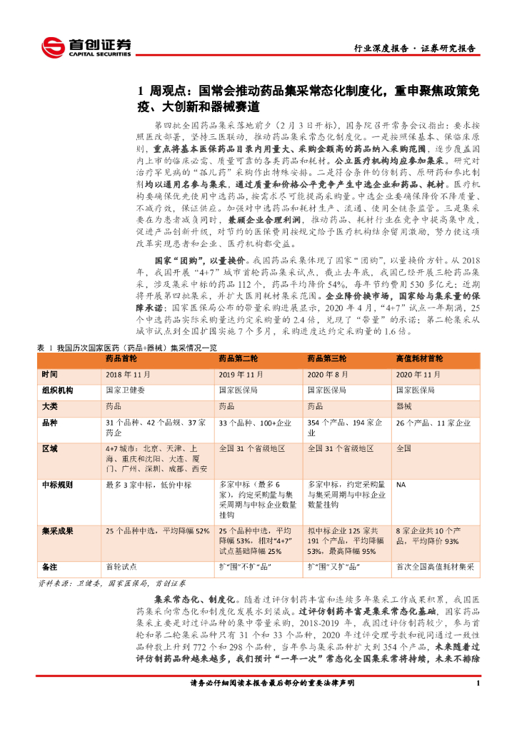 首创证券:医药生物行业周报:国常会推动药品集采常态化制度化,重申聚焦政策免疫、大创新和器械赛道.pdf