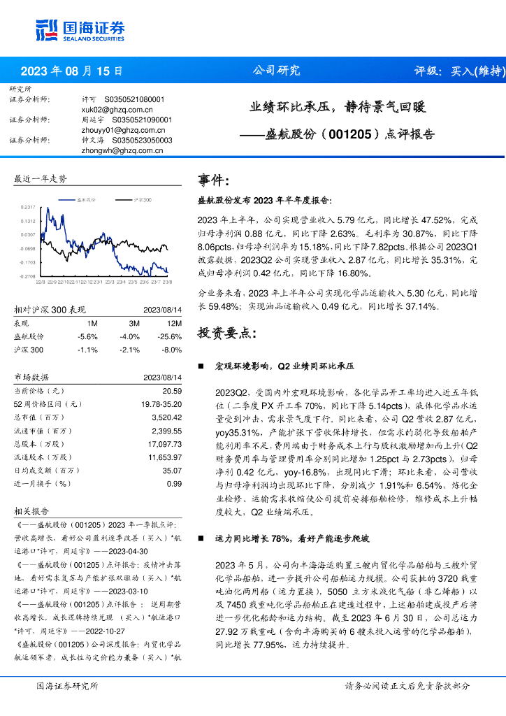 国海证券:盛航股份(001205)-点评报告:业绩环比承压,静待景气回暖.pdf