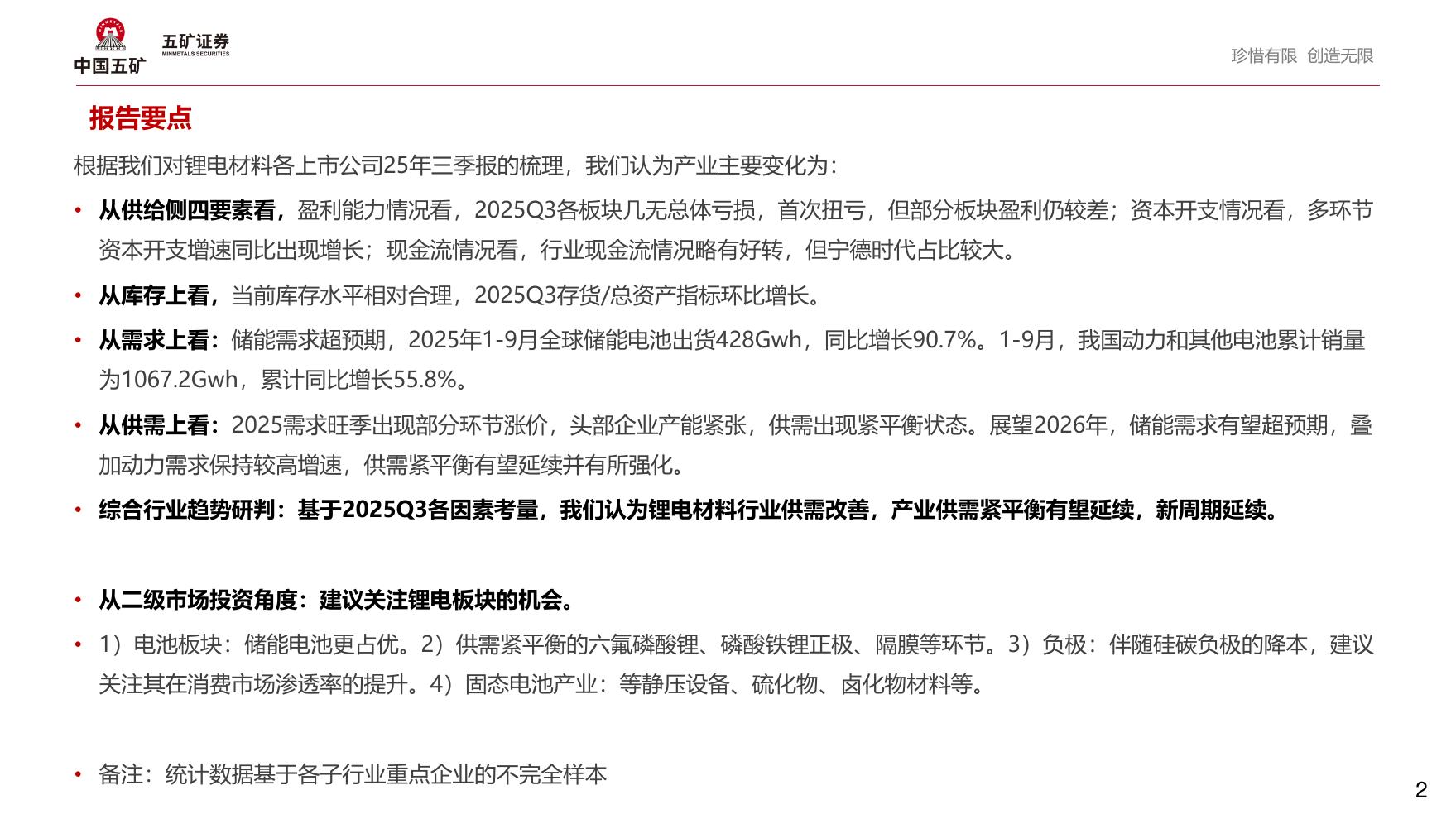 五矿证券:2025Q3锂电财报点评:产业供需紧平衡有望延续.pdf