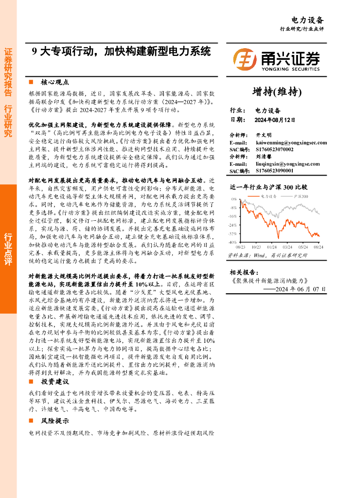甬兴证券:电力设备行业点评:9大专项行动,加快构建新型电力系统.pdf