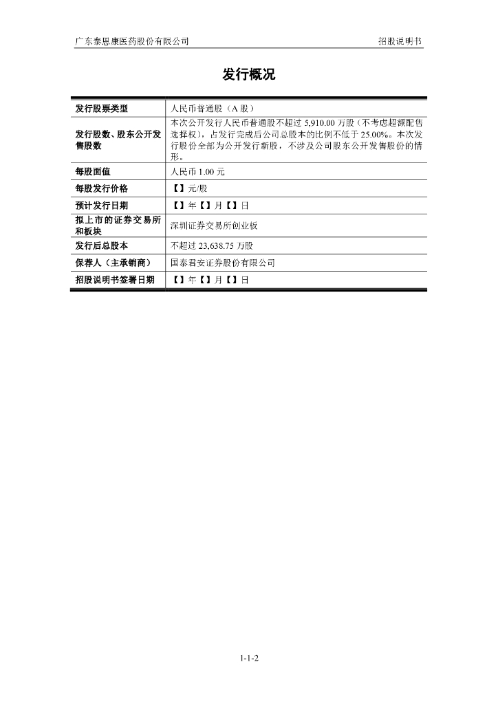 广东泰恩康医药股份有限公司深交所创业板IPO上市招股说明书.pdf