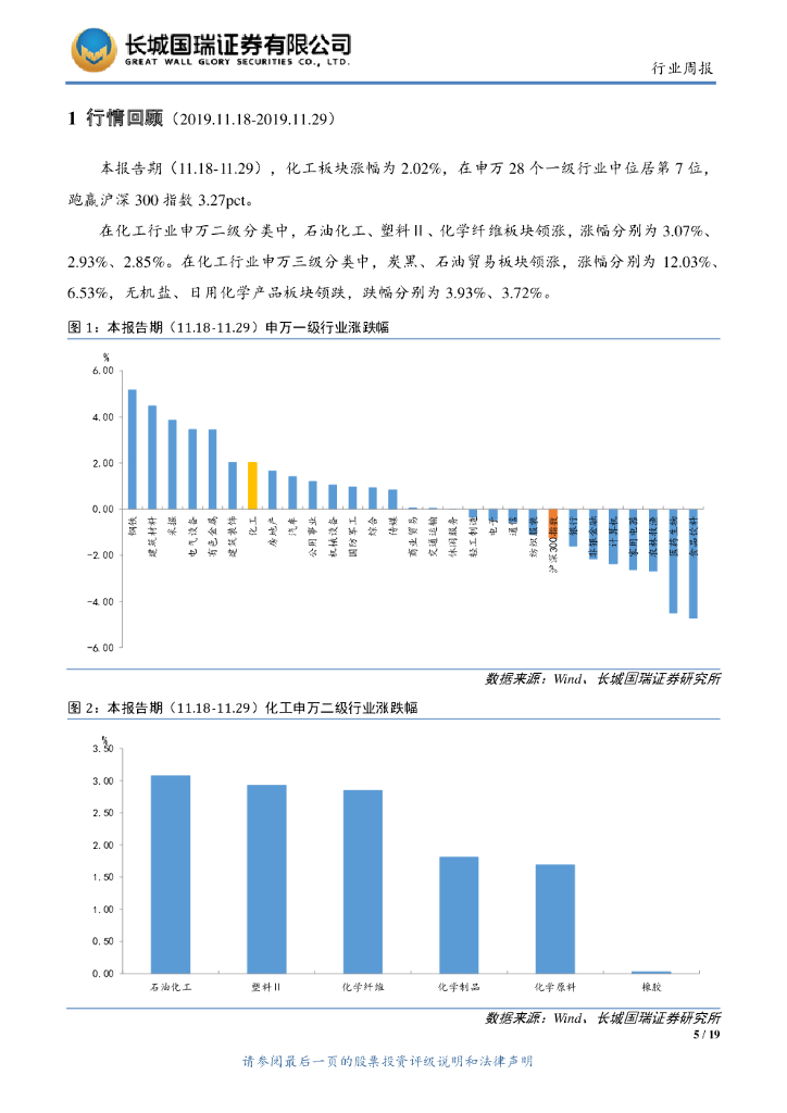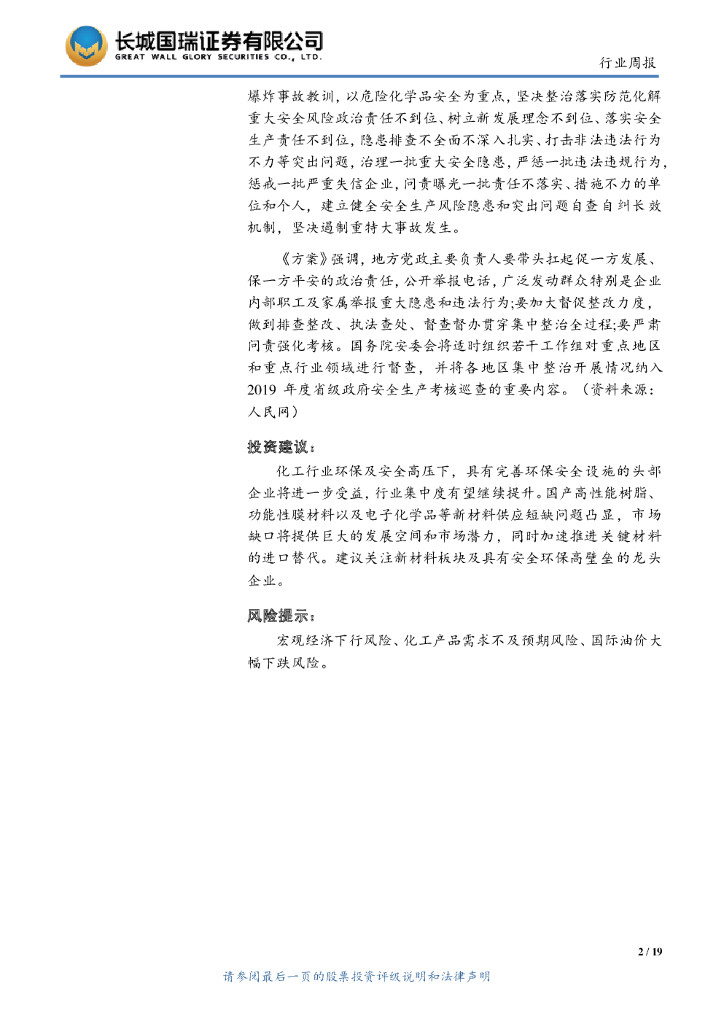 长城国瑞证券:化工行业双周报2019年第23期(总第23期):石化化工“十四五”规划研报征求意见,全国集中整治危险化学品等领域.pdf