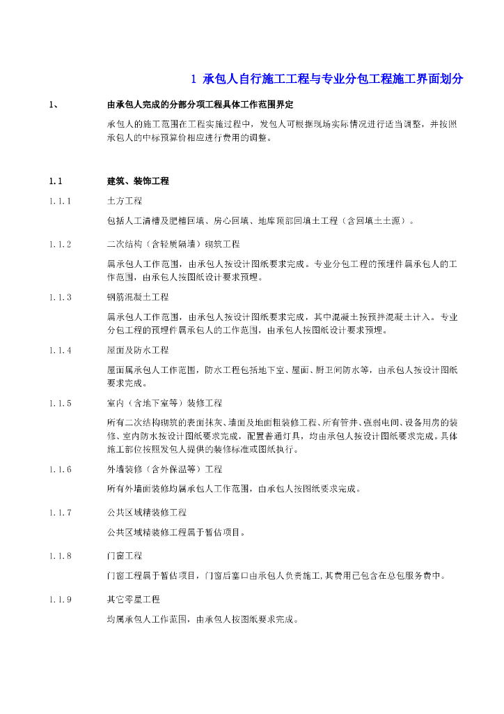 建筑工程总承包与分包界面划分大全(4种).doc