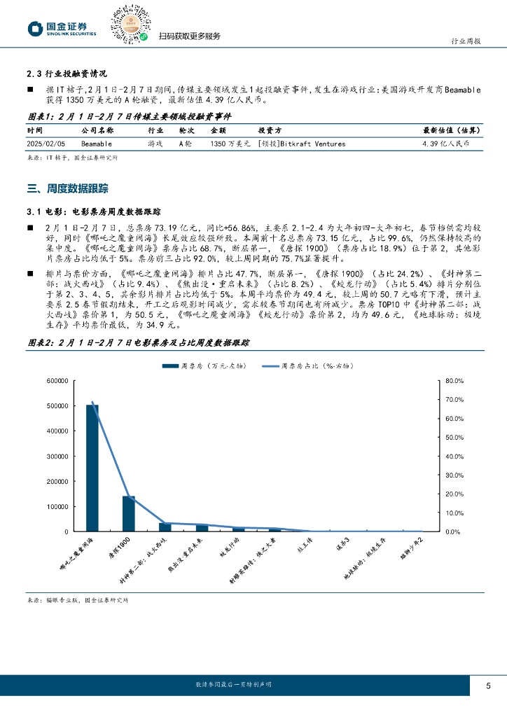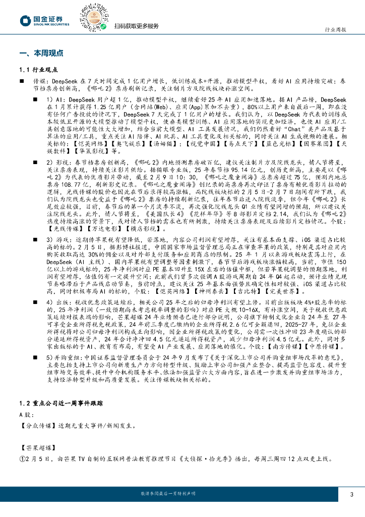 国金证券:传媒互联网产业行业:《哪吒2》票房刷新影史记录,DeepSeek7天用户破亿.pdf