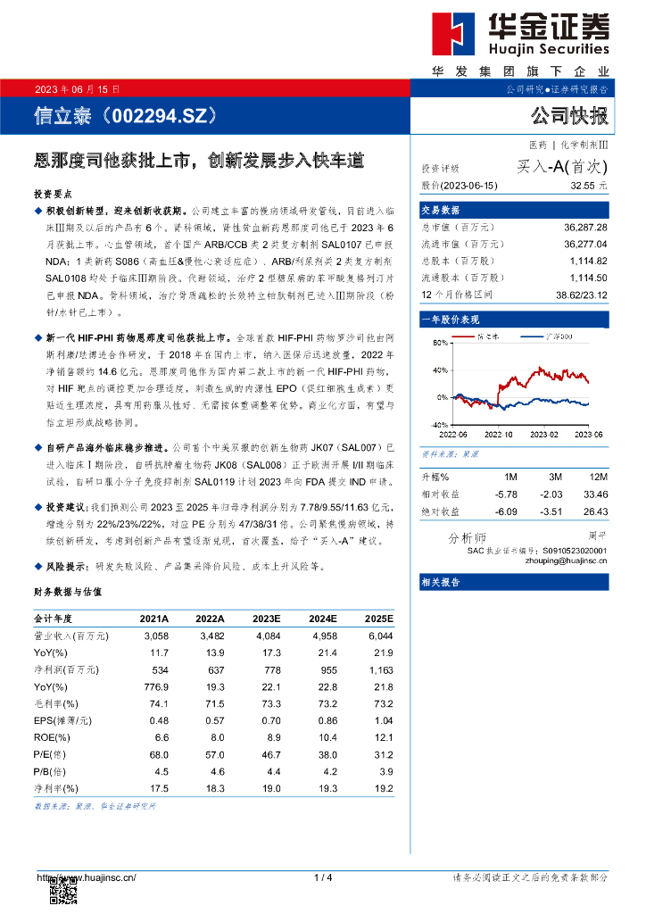 华金证券:信立泰(002294)-恩那度司他获批上市,创新发展步入快车道.pdf