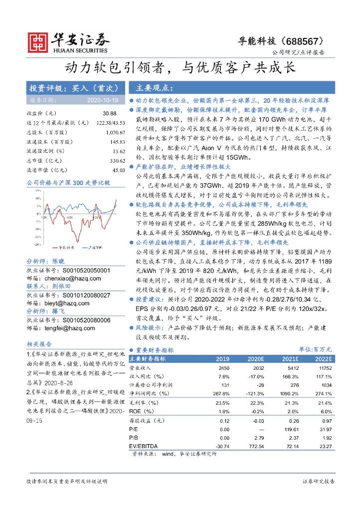 华安证券:孚能科技(688567)-动力软包引领者,与优质客户共成长.pdf
