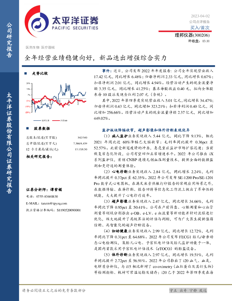 太平洋证券:理邦仪器(300206)-全年经营业绩稳健向好,新品迭出增强综合实力.pdf