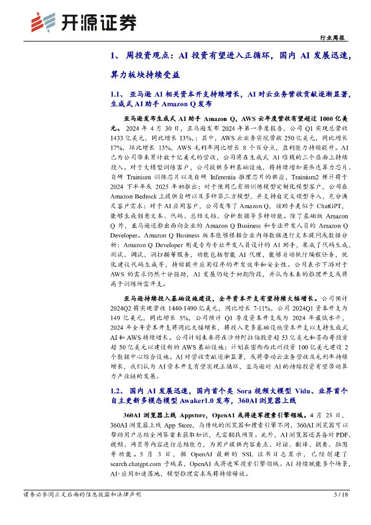 开源证券:通信行业周报:亚马逊资本开支持续增长,国内AI发展迅速,算力板块持续受益.pdf