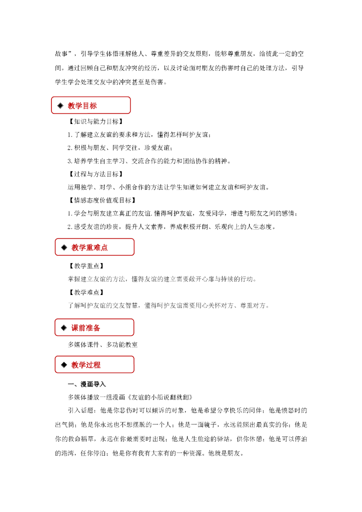 七年级上册 初中道德与法治5.1《让友谊之树常青》教学设计1.doc