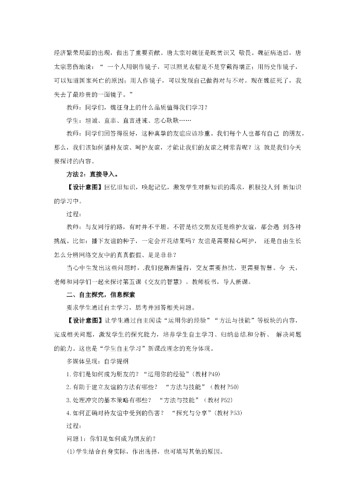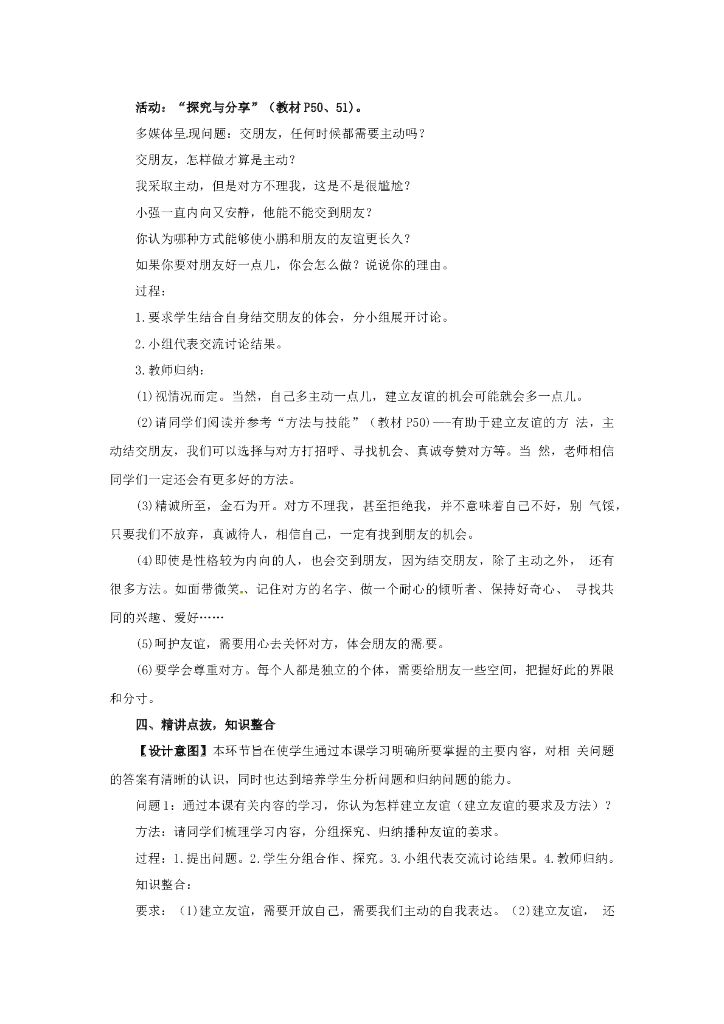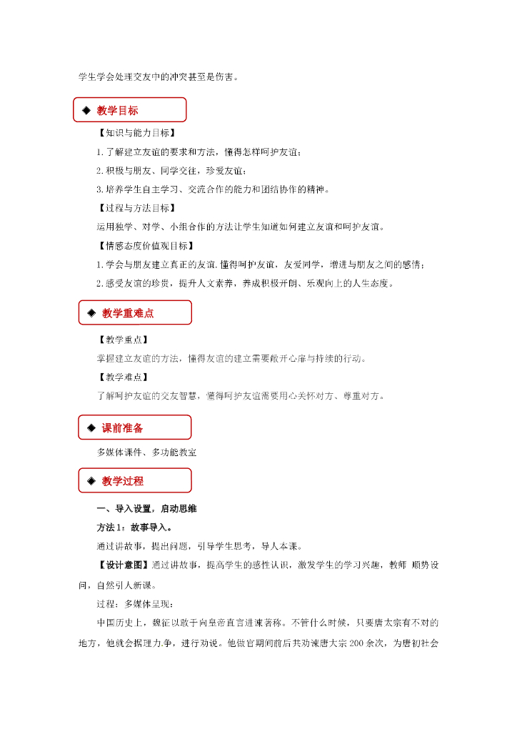 七年级上册 初中道德与法治5.1《让友谊之树常青》教学设计2.doc
