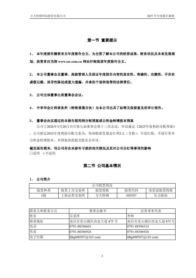 600507-方大特钢:方大特钢2025年年度报告摘要.pdf