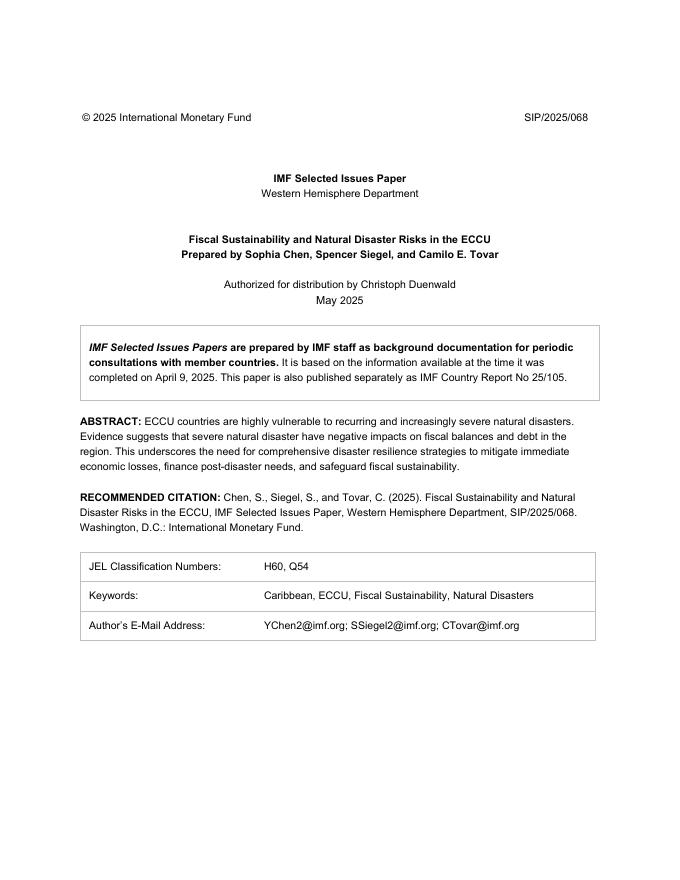国际货币基金组织:ECCU的财政可持续性和自然灾害风险:ECCU(英文版).pdf