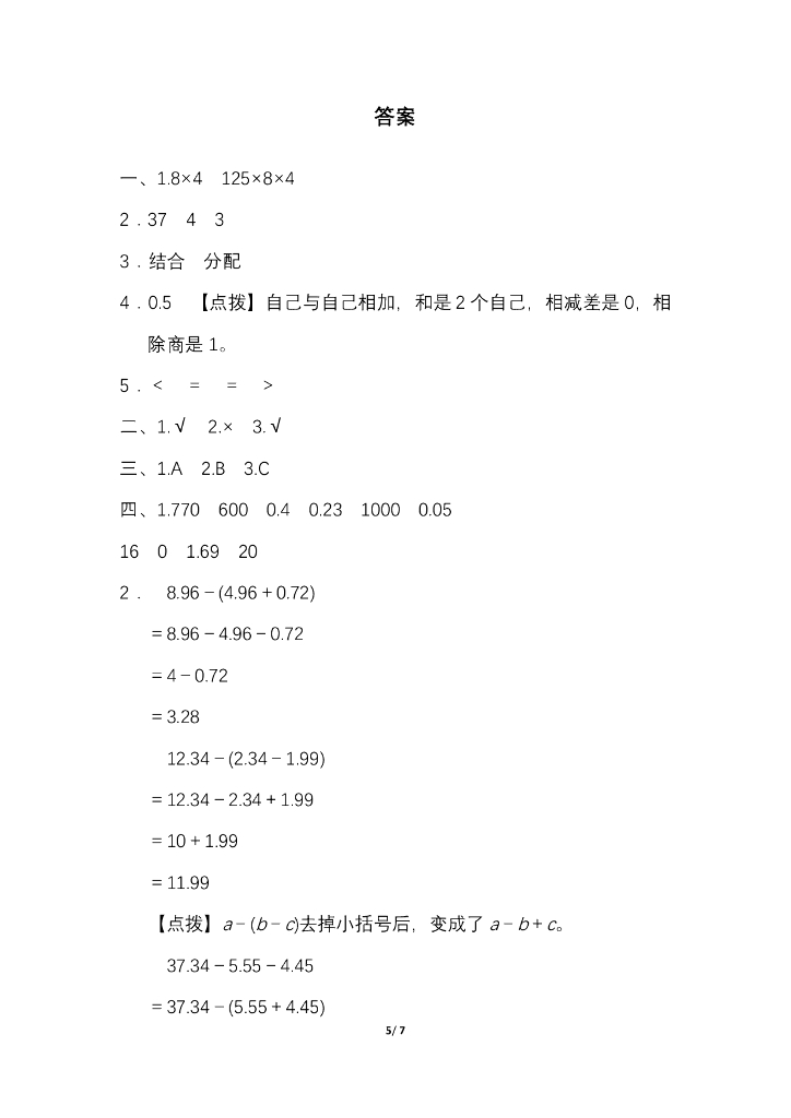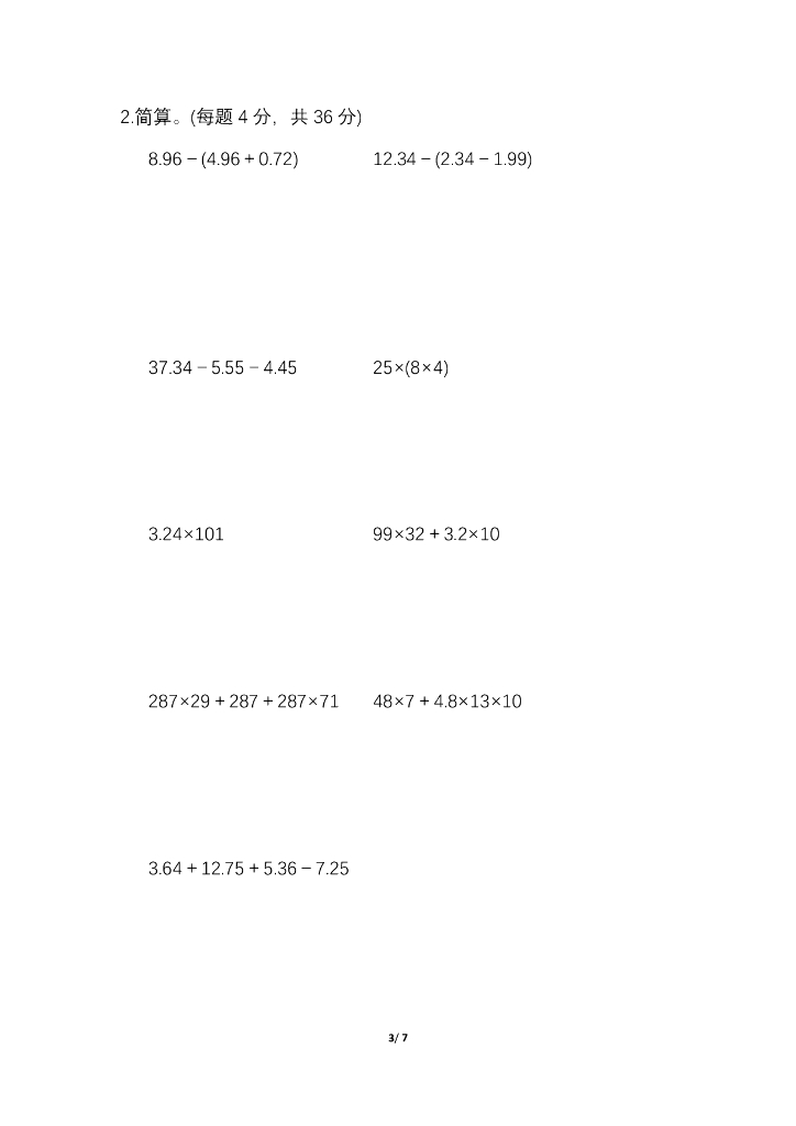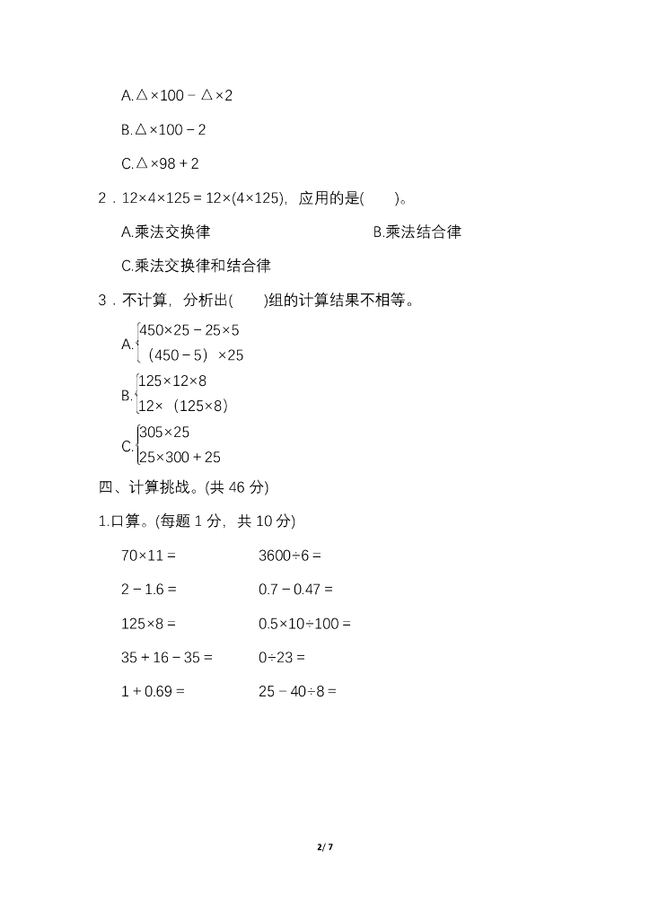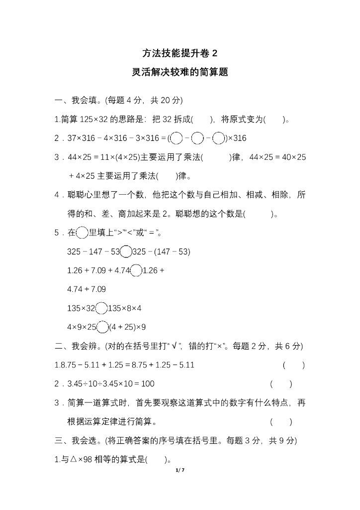 人教四(下)期末冲刺卷2 灵活解决较难的简算题.pdf