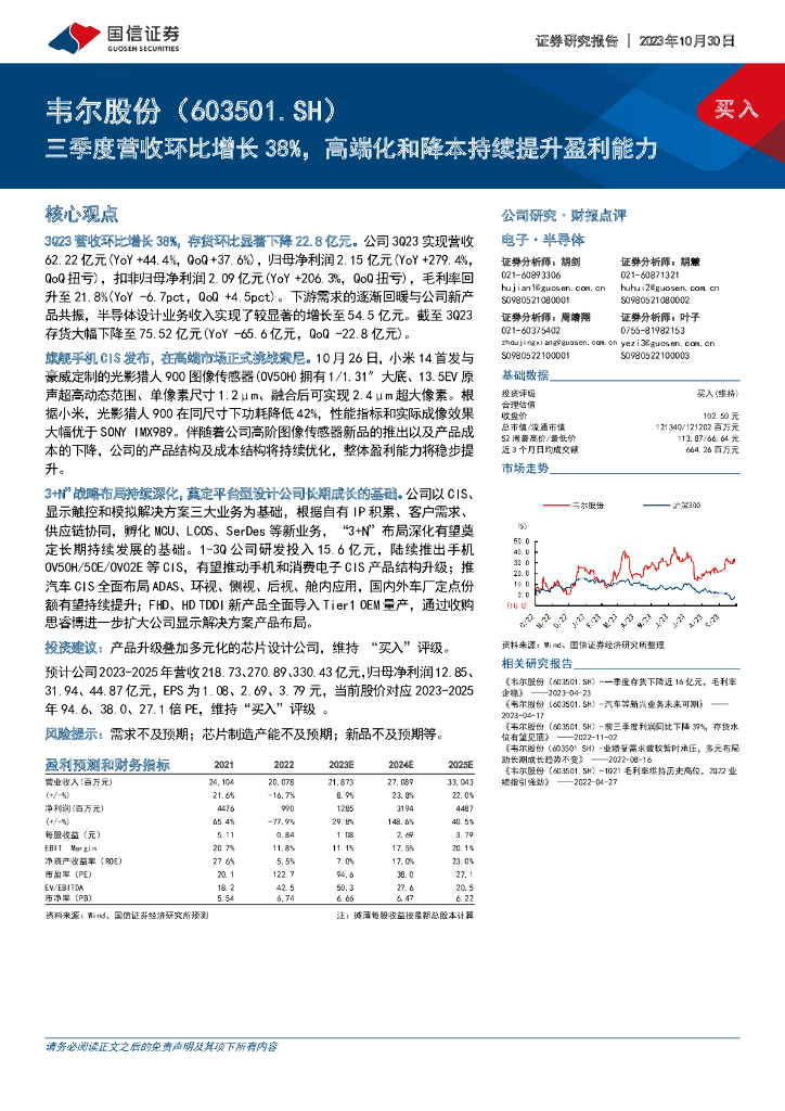 国信证券:韦尔股份(603501)-三季度营收环比增长38%,高端化和降本持续提升盈利能力.pdf