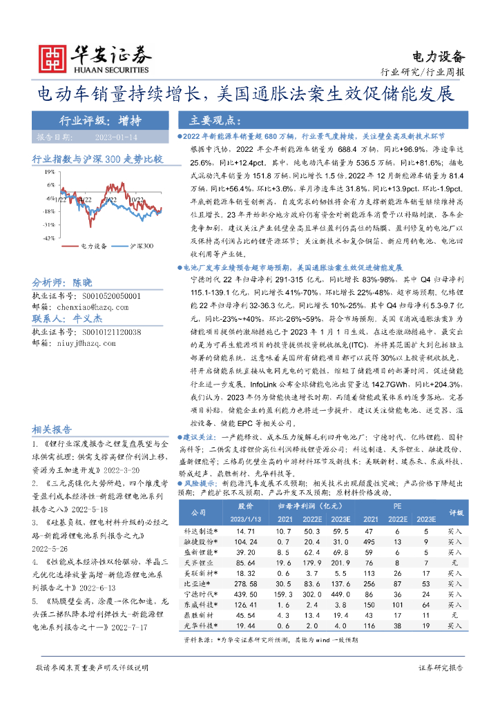 华安证券:电力设备行业周报:电动车销量持续增长,美国通胀法案生效促储能发展.pdf