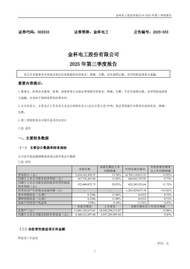 002533-金杯电工:2025年三季度报告.pdf