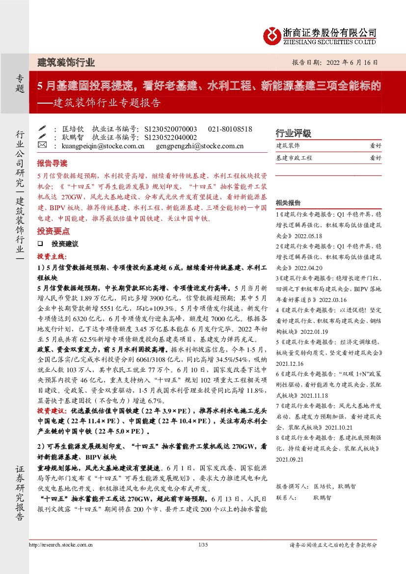 浙商证券:建筑装饰行业专题报告:5月基建固投再提速,看好老基建、水利工程、新能源基建三项全能标的.pdf