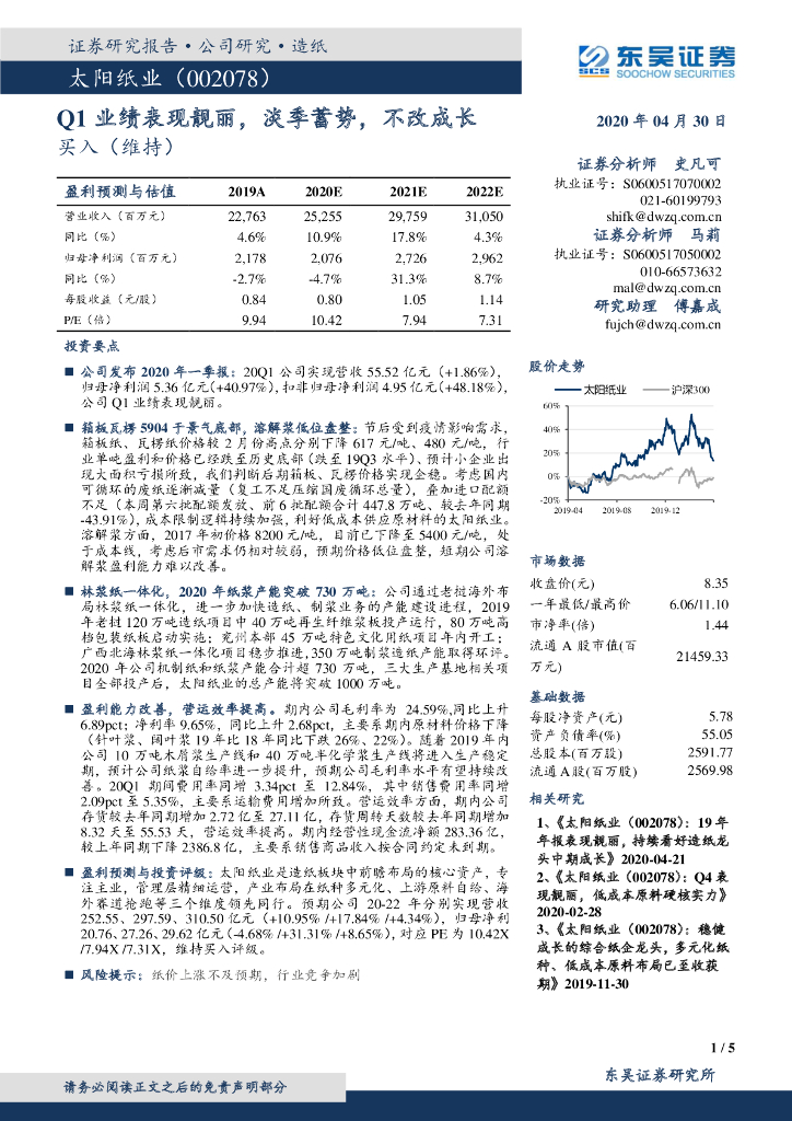 东吴证券:太阳纸业(002078)-Q1业绩表现靓丽,淡季蓄势,不改成长.pdf