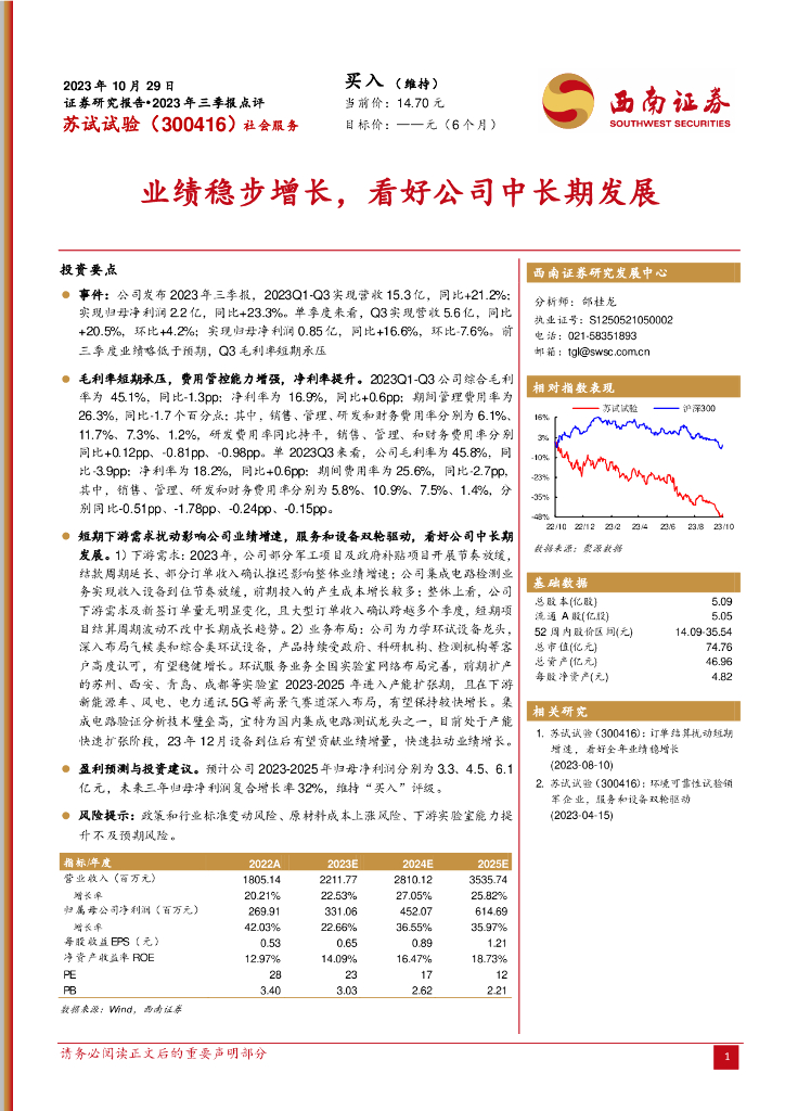 西南证券:苏试试验(300416)-2023年三季报点评:业绩稳步增长,看好公司中长期发展.pdf