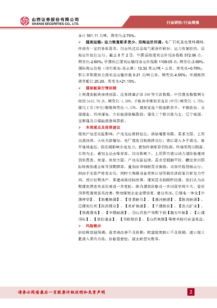 山西证券:煤炭行业周报:降息叠加设备更新计划实施,关注双焦需求恢复.pdf