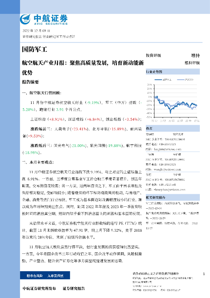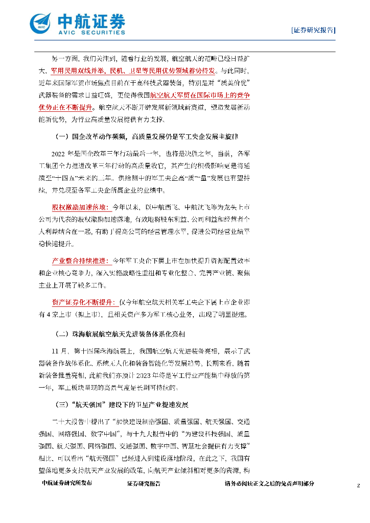 中航证券:航空航天产业月报:聚焦高质量发展,培育新动能新优势.pdf