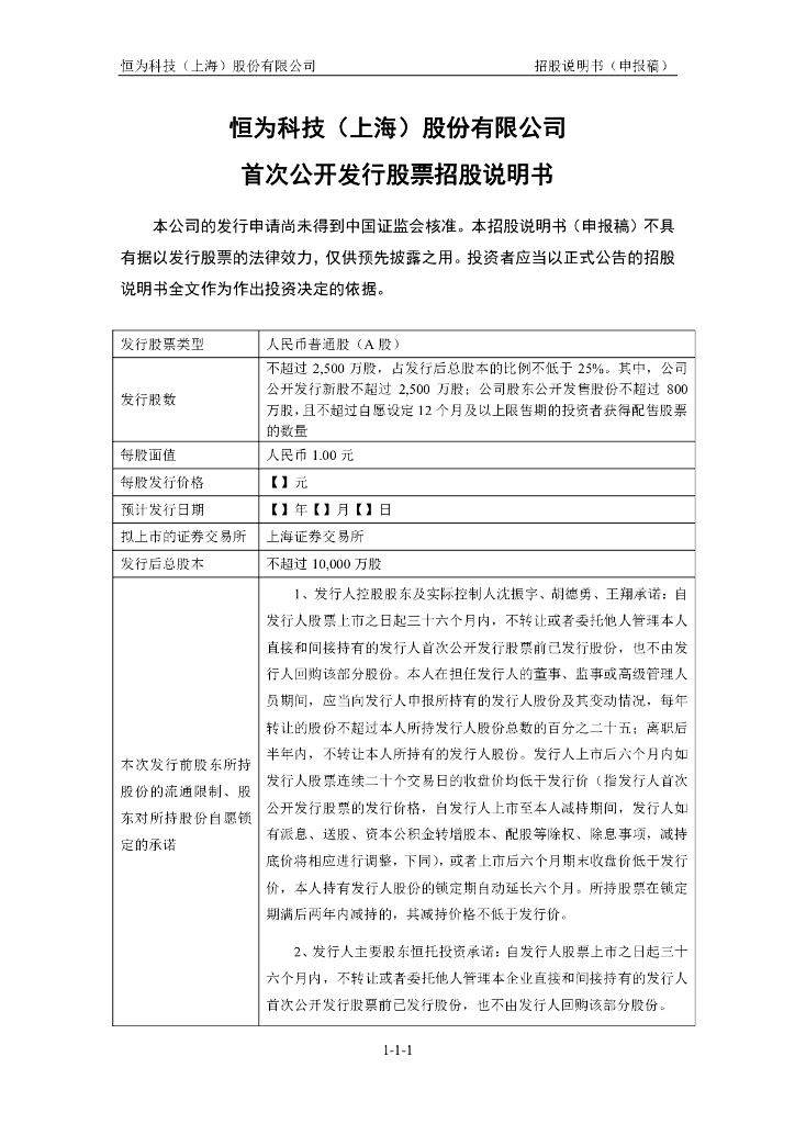 恒为科技(上海)股份有限公司上交所主板IPO上市招股说明书.pdf