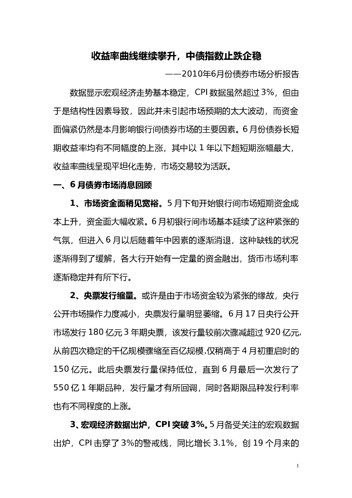 中债研发中心:2010年6月份债券市场分析报告.doc