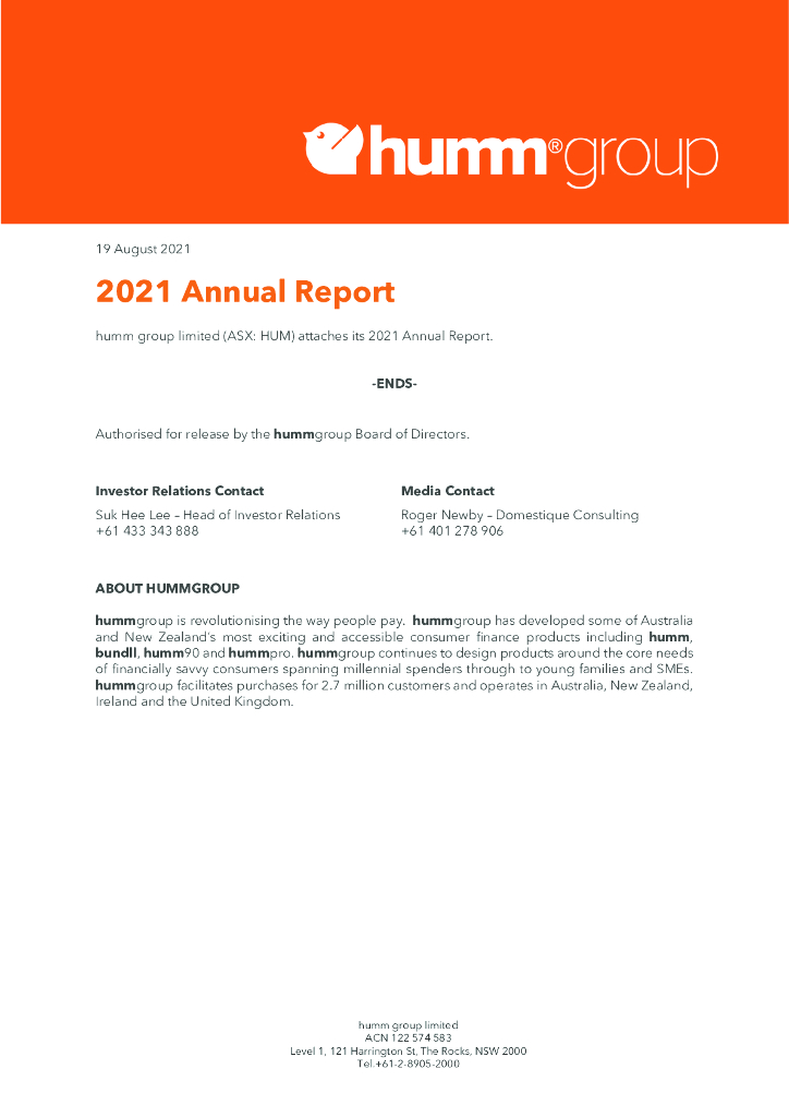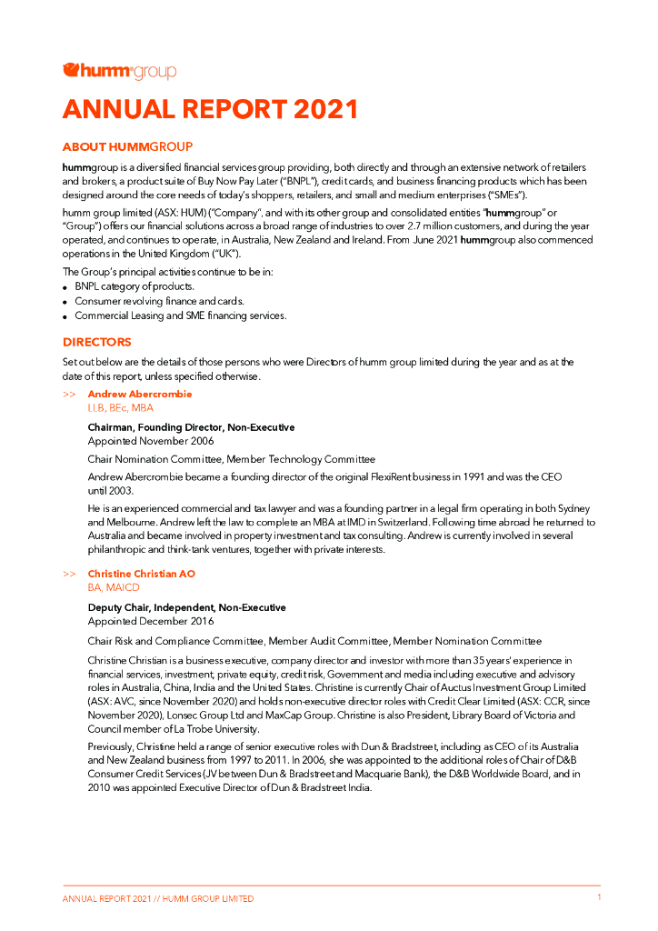 humm group(HUM)2021财年年度报告(英文版).pdf
