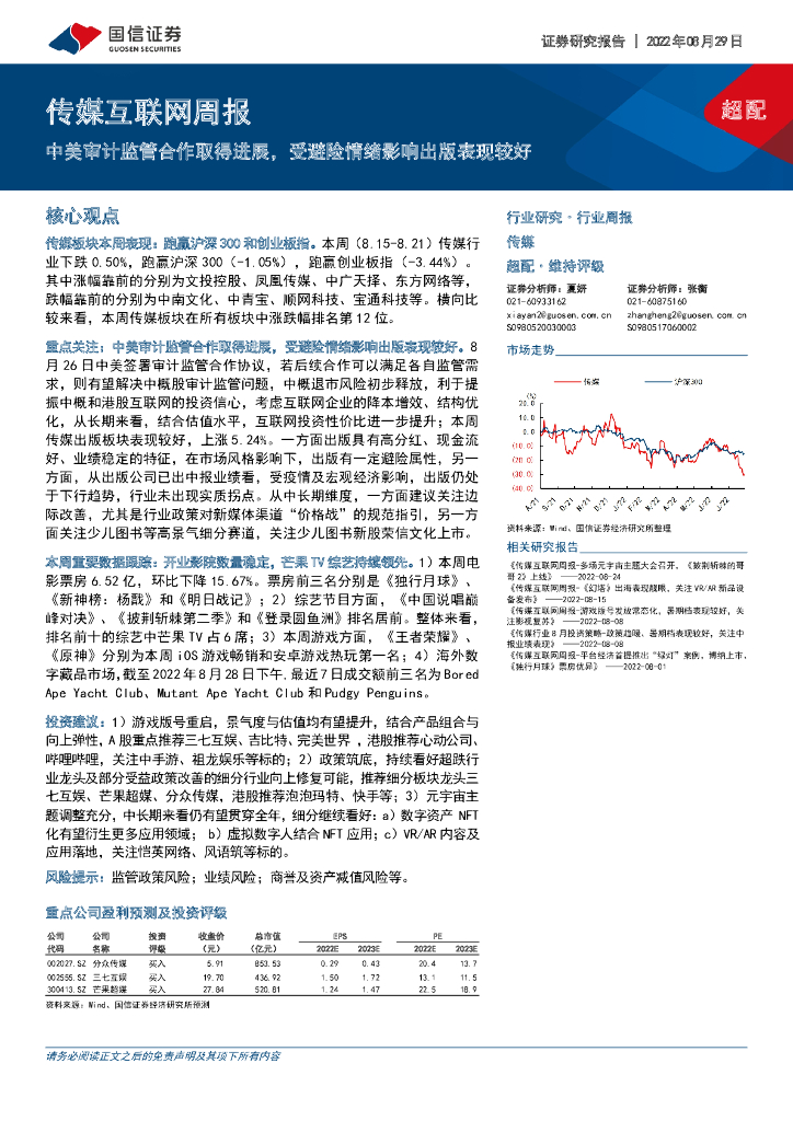 国信证券:传媒互联网周报:中美审计监管合作取得进展,受避险情绪影响出版表现较好.pdf