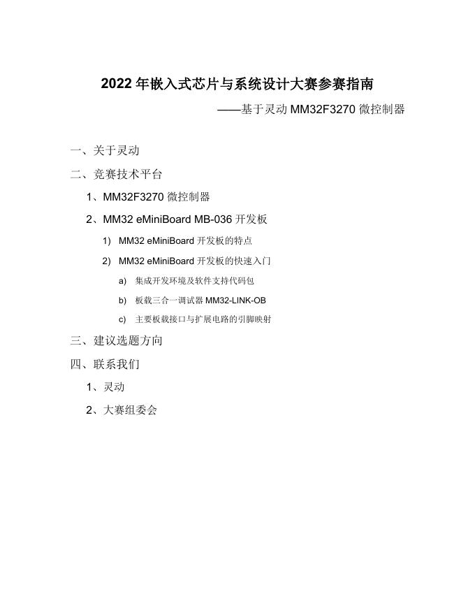 2022年嵌入式芯片与系统设计大赛参赛指南 ——基于灵动MM32F3270微控制器.pdf
