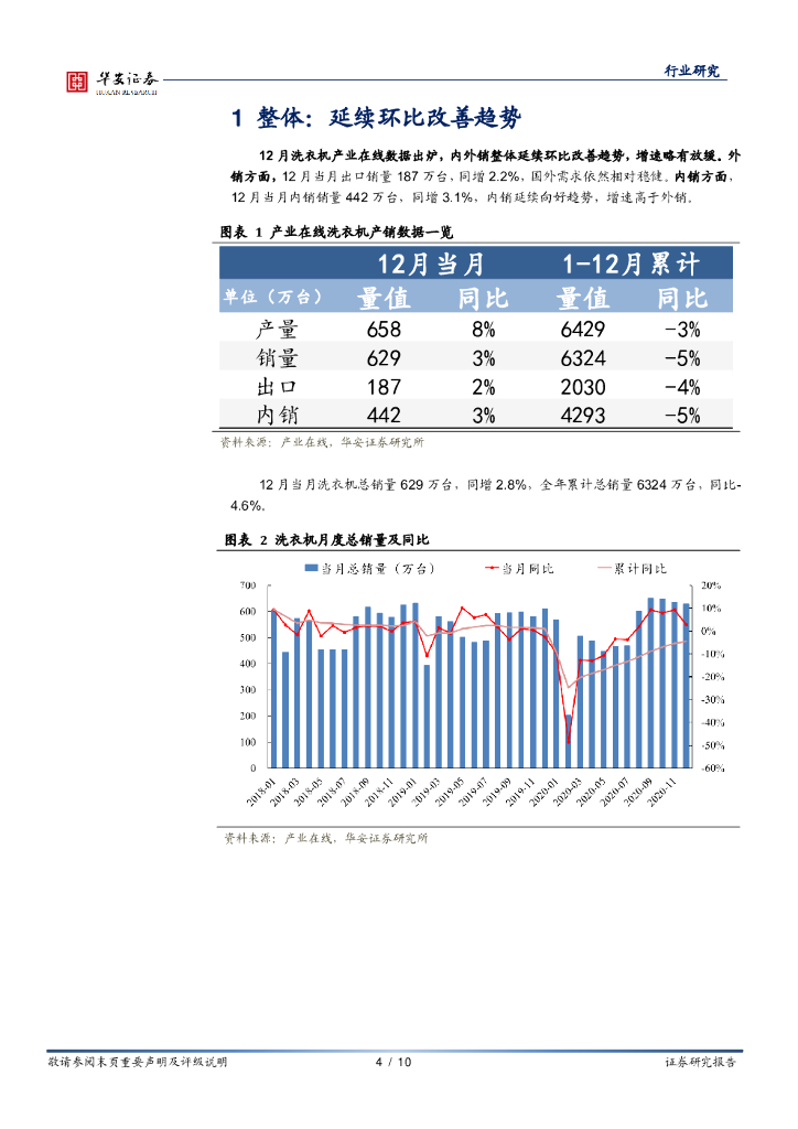 华安证券:家用电器行业点评:12月洗衣机产业在线数据点评:内外销同比+3%/+2%,延续环比改善趋势.pdf