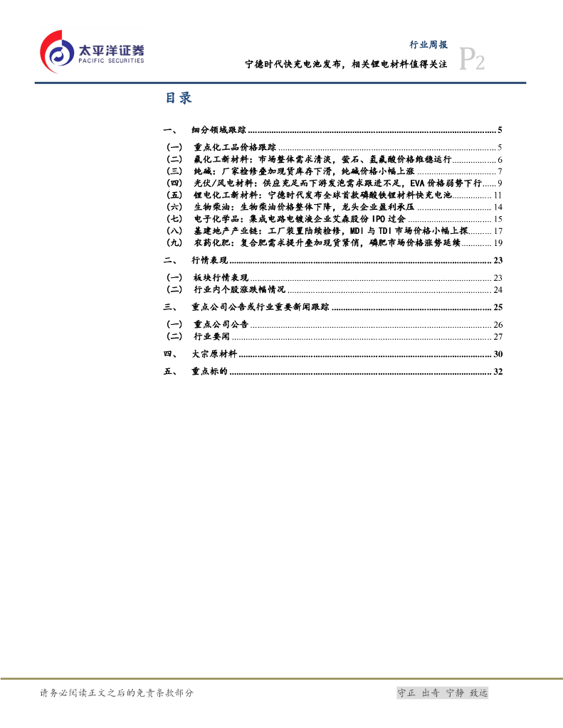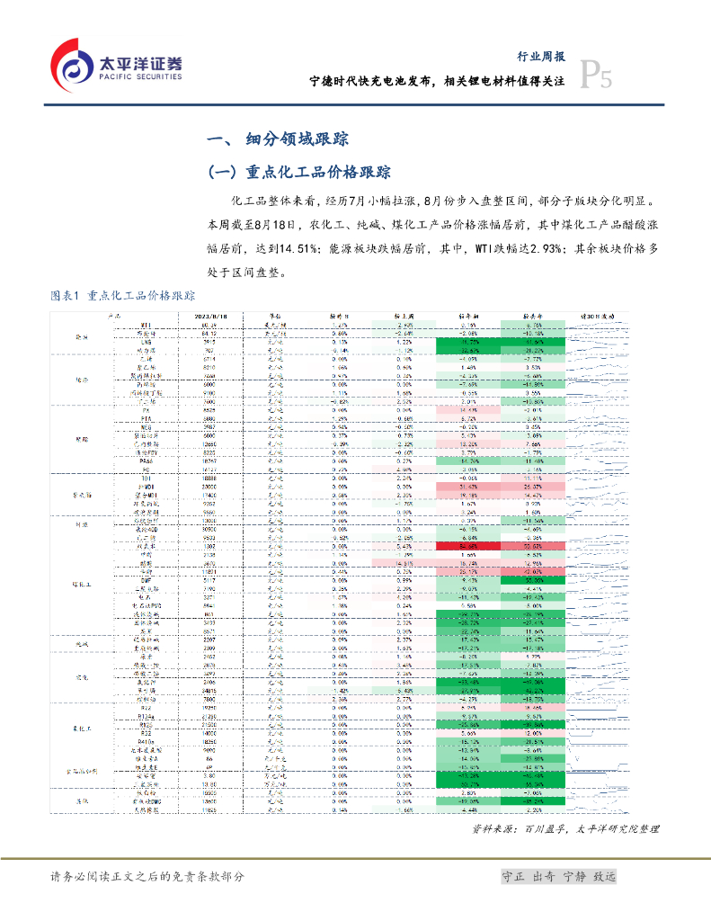 太平洋证券:化工&新材料行业周报:宁德时代快充电池发布,相关锂电材料值得关注.pdf