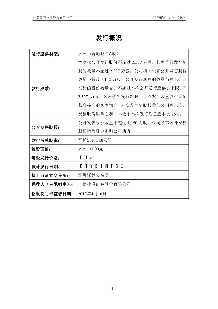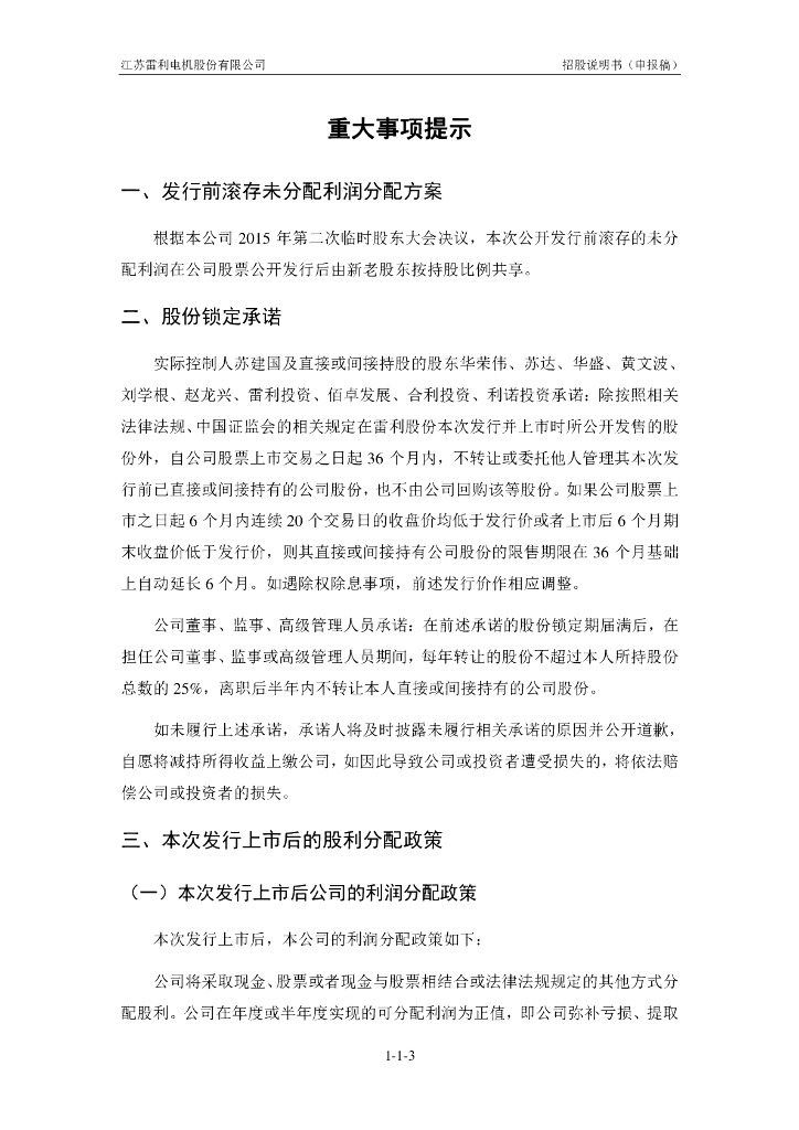 江苏雷利电机股份有限公司深交所创业板IPO上市招股说明书.pdf