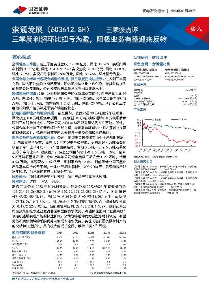 国信证券:索通发展(603612)-三季报点评:三季度利润环比扭亏为盈,阳极业务有望迎来反转.pdf