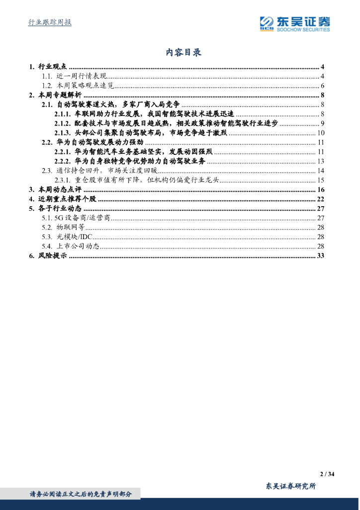 东吴证券:通信行业本周专题:通信一季度持仓回升,华为重点发力自动驾驶解决方案.pdf