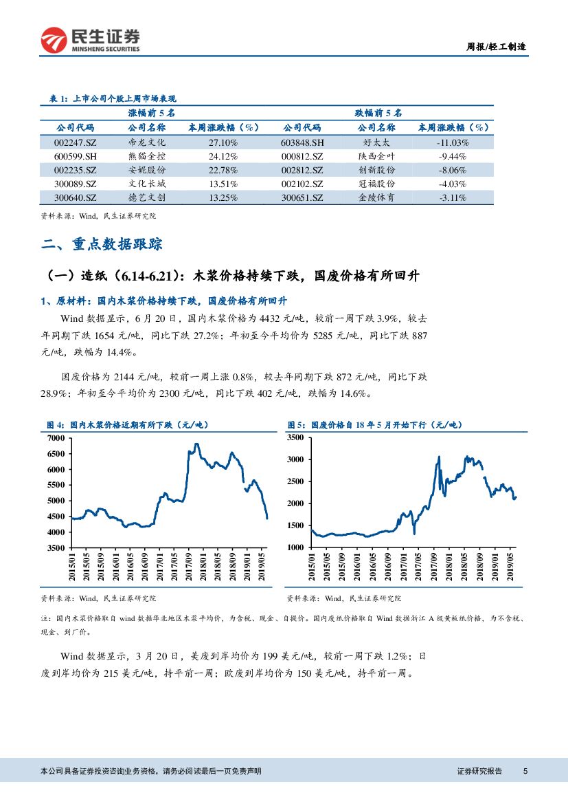 民生证券:轻工制造周报:木浆价格持续下跌,19年第8批外废仅批复5940吨.pdf