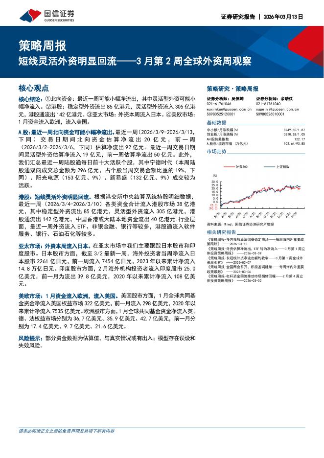 国信证券:3月第2周全球外资周观察:短线灵活外资明显回流-260315.pdf
