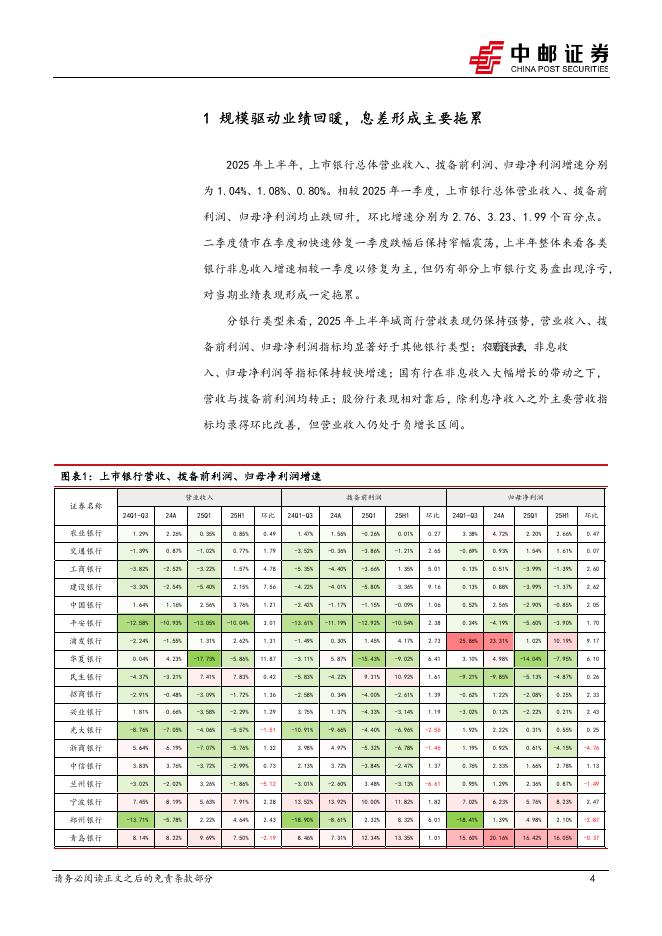 中邮证券:银行2025年中报综述:业绩筑底转正,关注信贷投放及息差改善.pdf