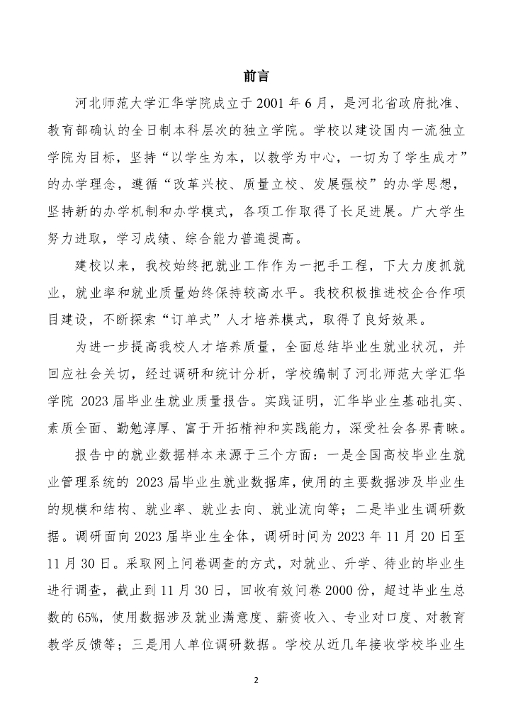 河北师范大学汇华学院2023年毕业生就业质量年度报告.pdf
