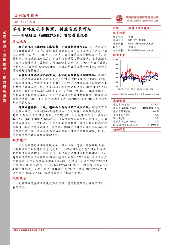 东亚前海证券:百联股份(600827)-首次覆盖报告:华东老牌龙头零售商,新业态成长可期.pdf